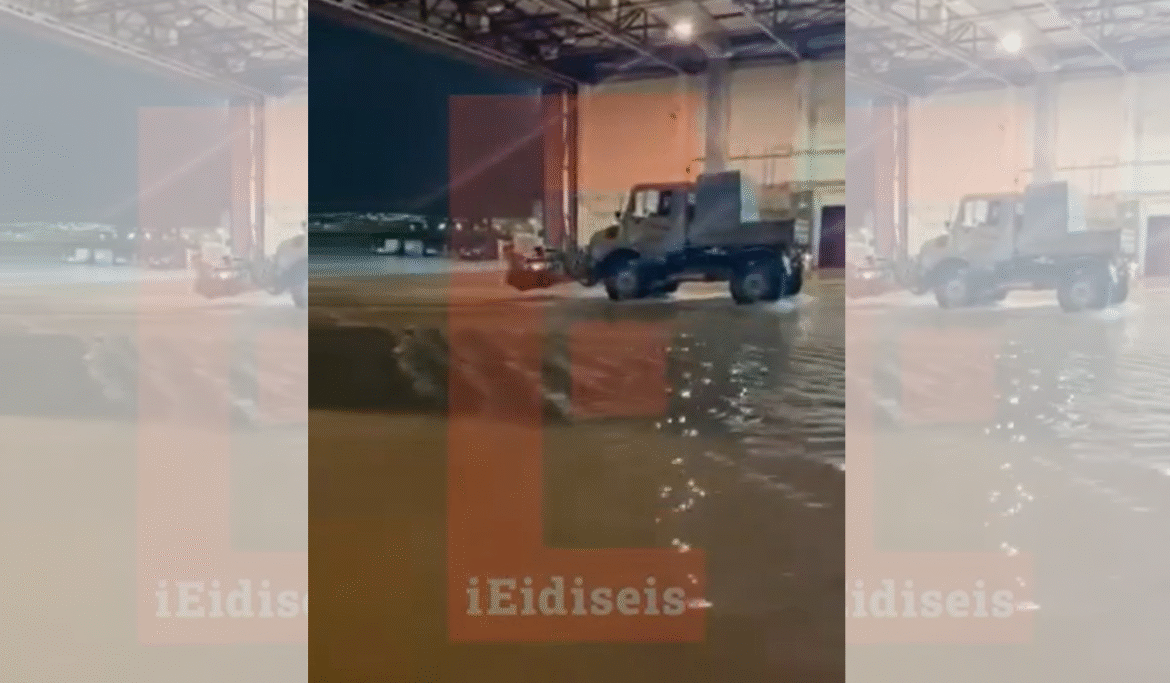 Έγινε λίμνη το υπόστεγο συντήρησης της 112 Πτέρυγας Μάχης στην Ελευσίνα (δείτε βίντεο)